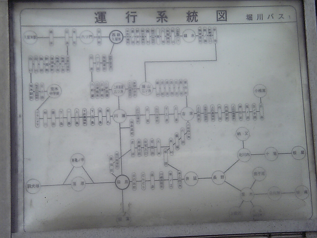 茫然自失。 ってな感じのことがあるとわかっていて、柳川に行ってきた。堀川バスという時間の止まったような路線が多い会社の路線で、つい2~3年前まで狭い路地を抜けてこの終点まで大型バスが走っていた。 で、そのいくつかの路線跡を巡りながら考えた。意外な話、バス路線の跡というのは痕跡があるものだという話。何せこの辺の道路はあまり拡幅がされていないのだ。それもそのはずでこの辺は水路が発達していて、古い家並みが漁村と同じ家の作り。通りまで家がみっちり建ってしまっているのだ。 なもので興味深いものがたくさん発見された。道路に付け足された、バスの離合ポイント。そしてそこにホーロー看板がいっぱいくっついた壁の商店。注意深く見ないとわからないが、見れば「ああ、なるほど」と思うものばかりです。 写真はそういう商店の一つ。バス停は、もうありません。 しかし昔は、本当に福岡県内では「西鉄」がほとんどの県内エリアを走り、細々と「昭和バス」「堀川バス」「国鉄バス」の3つがそれぞれ小さなエリアで路線網を広げていた。 太平洋戦争時、戦時統制というやつで、福岡県内の交通各社は合併をして西日本鉄道というひとつの会社になった。 関西でも一時期近鉄や南海が合併していたような時代の話である。 西鉄は戦後になっても分離はせず、良くも悪くもガリバー企業として発展を遂げたのだが、その枠からあぶれた堀川バスは、八女地方を中心にマイペースの運営をしていた。 この堀川バス、3系統だけ久留米の市内線を持っていた。 久留米は西鉄のエリアで、大通りのほとんどは西鉄に押さえられてしまっている。 1系統は広川町まで、大通りを西鉄と併走していて程なく負け。 もう1系統も廃止。鹿児島本線線路沿いを中心に狭隘路を縫うように走るトンデモ路線で、荒木駅のそばの踏切から見える狭隘路に、バス停がぽつんと置かれていたのを覚えている。 残り1本は現役の鑓水線。現在も割と本数もあり、需要があることが伺える。 この路線は日に4本だけ、その鑓水から先へ、本社のある八女と運行されている。 その鑓水から一個目のバス停がこれ。 この狭さなのにまたここ、交通量が多い。そしてバスもでかい。 しかし通は「おお、これぞ堀川バスだなあ」と納得してしまう。 堀川バスは本当に通好みなのだ。特に、狭隘路線マニアにとっては。 是非興味があったら訪れてほしい。「何でこんな道を選ぶ!!」が詰まっています。このちょっと先、道路の改良が進んでた気がするので、ひょっとしたらもうないかもしれないが・・・。 こんな路線に乗ろうというのは野暮だろう。地元の学生のために残しました、といわんばかりの早朝と夕方設定のダイヤ。バスってのは公共物なので、たかだか眺めるのが好きな好事家なんかが上がりこんでゴメイワクになってしまってはいけない。 星野村の特徴はもう風光明媚、だが人はいない。これに尽きる稀有な村だと思う。お世辞ではなく本当に。ゆえにバス停の写真ももうむちゃくちゃ撮っ てしまって、一週間に一辺ひとつづつやってもおっつかないくらいな上にまだまだ撮り残しがあるというくらいなのだが、この迂回線のバス車窓から眺められる であろう風景たるや。 青々とした茶畑、広がる棚田。真ん中を流れる清流。これ以上に何があるかという日本の原風景にうっとりしてほしいのだけど、そのバスに乗れるのは地元の人々だけでよいのです。宝石というのはガラスケースの向こうにあって、眺めるものだと思っているのです。 |