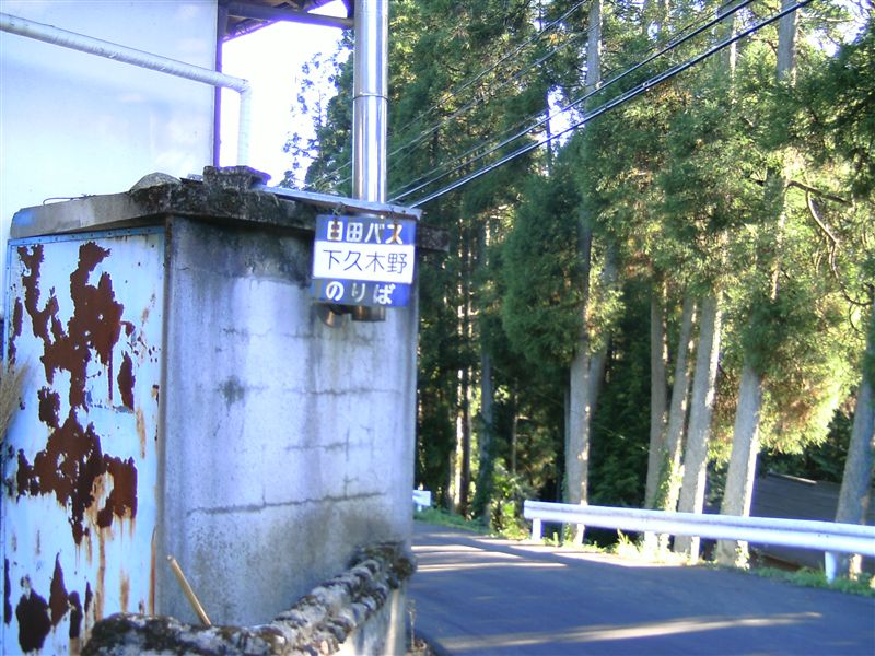 × [PR]上記の広告は3ヶ月以上新規記事投稿のないブログに表示されています。新しい記事を書く事で広告が消えます。 温泉に入って、とりあえず帰路に着くことにはした。 五馬線に沿って帰ろう、新しい発見があるかもしれないなんてちょっと考えた。 確かに、再探訪の際路線表の見落としが発覚することはある。 この日の温泉への往路、実は「中園」というバス停の見落としが発覚、真新しい標柱が立ってしまっていたのだ。もっともそのバス停は村で最大の雑貨店のまん前で、標識ゼロ・時刻表のみ雑貨店の軒先に掲載だったという可能性も否定できないから、まあすっぱい葡萄だったと思うさね。ふてた顔で。 さて復路。五馬線は主要地方道・天ヶ瀬阿蘇線を通るのだが、所々が2車線に改良済み。 三日月湖のような旧道の入り口付近にバス停が配置されている。奥に行くことはないだろう。 そんな旧道の入口にある「ゲートボール場前」バス停。 旧道の出口部分はさほど離れていなくて、目視できる距離で再合流しているのがわかる。 ふと、野生の勘が働いた。 向こうに見える森は下り斜面のようだ。地形的にもあの旧道にはそう大きな集落はなさそう、今までそう判断してきた。しかし本当に、第六感的なひらめきでそこを曲がった瞬間・・・ ・・・が、上の写真。 「ゲートボール場前」からは100メートルあるかないかの距離。 わざわざこのバス停のために、バスがここに入り込む必然性。 その軒先型とも壁型ともつかないフォルム。 考えれば考えるほど赤瀬川原平の考現学のような考察が頭をよぎってしまう。いやー、大発見をしてしまった。 PR