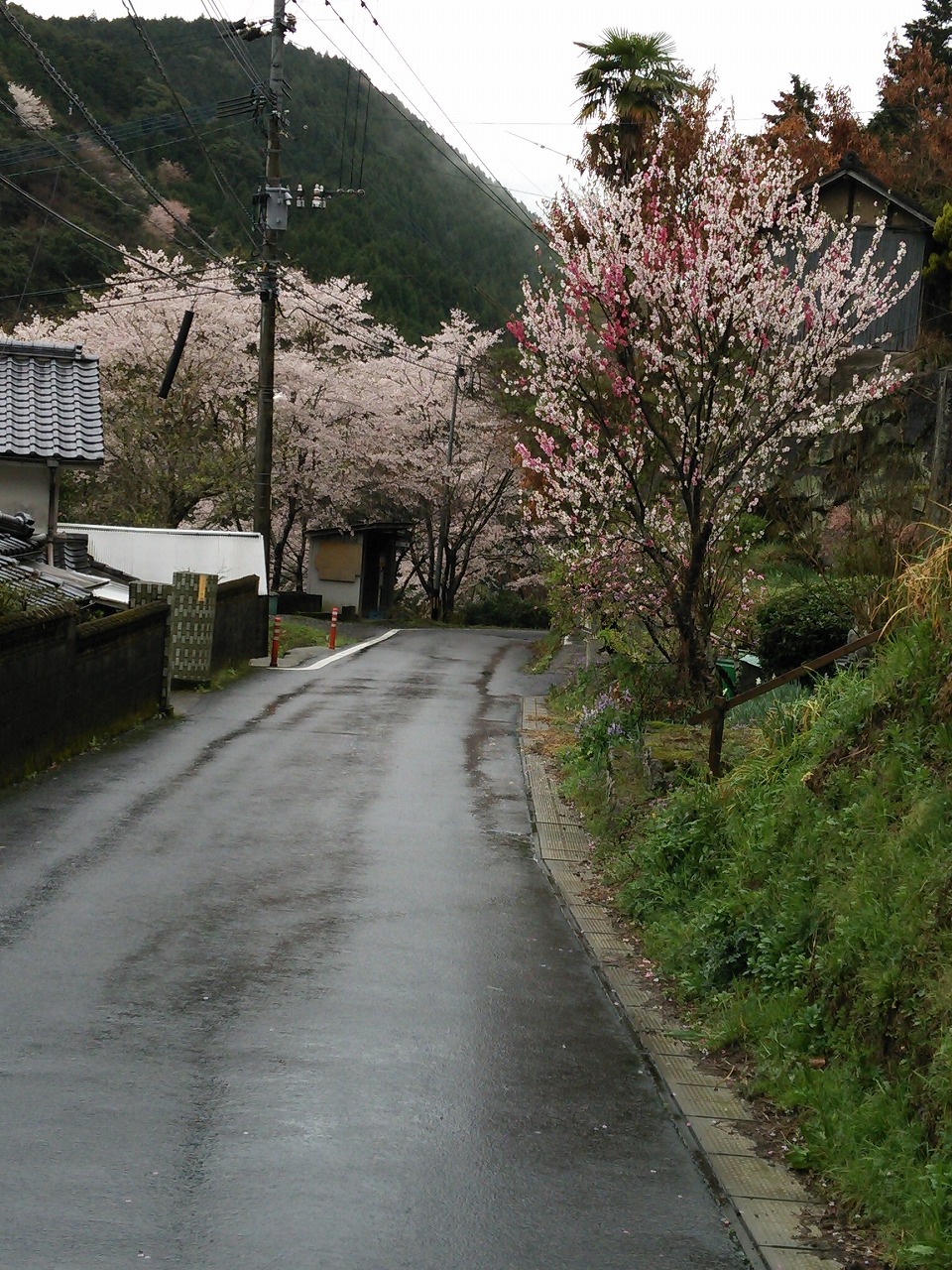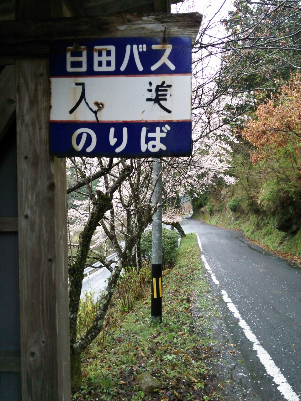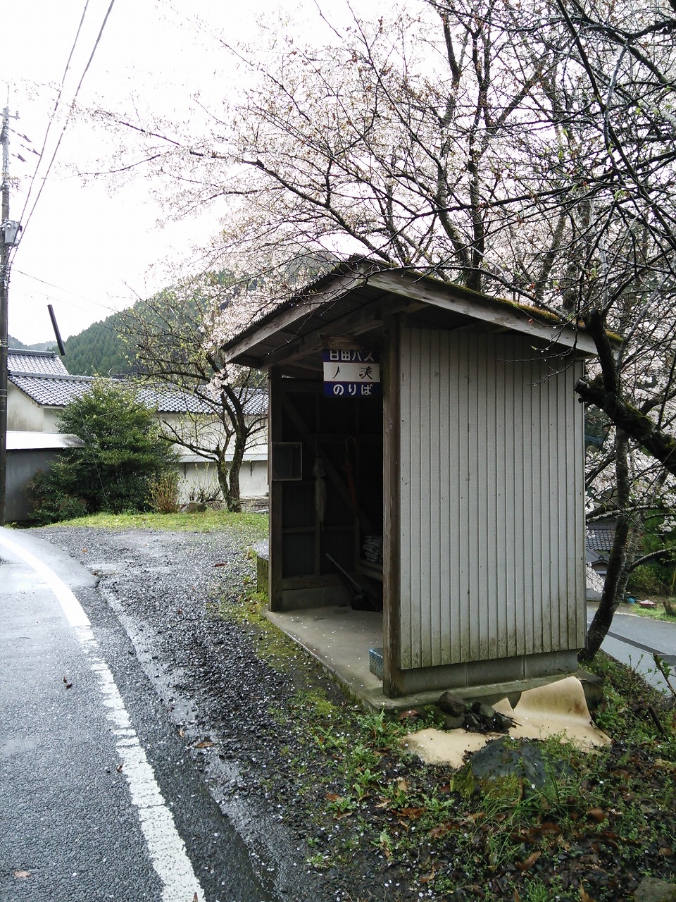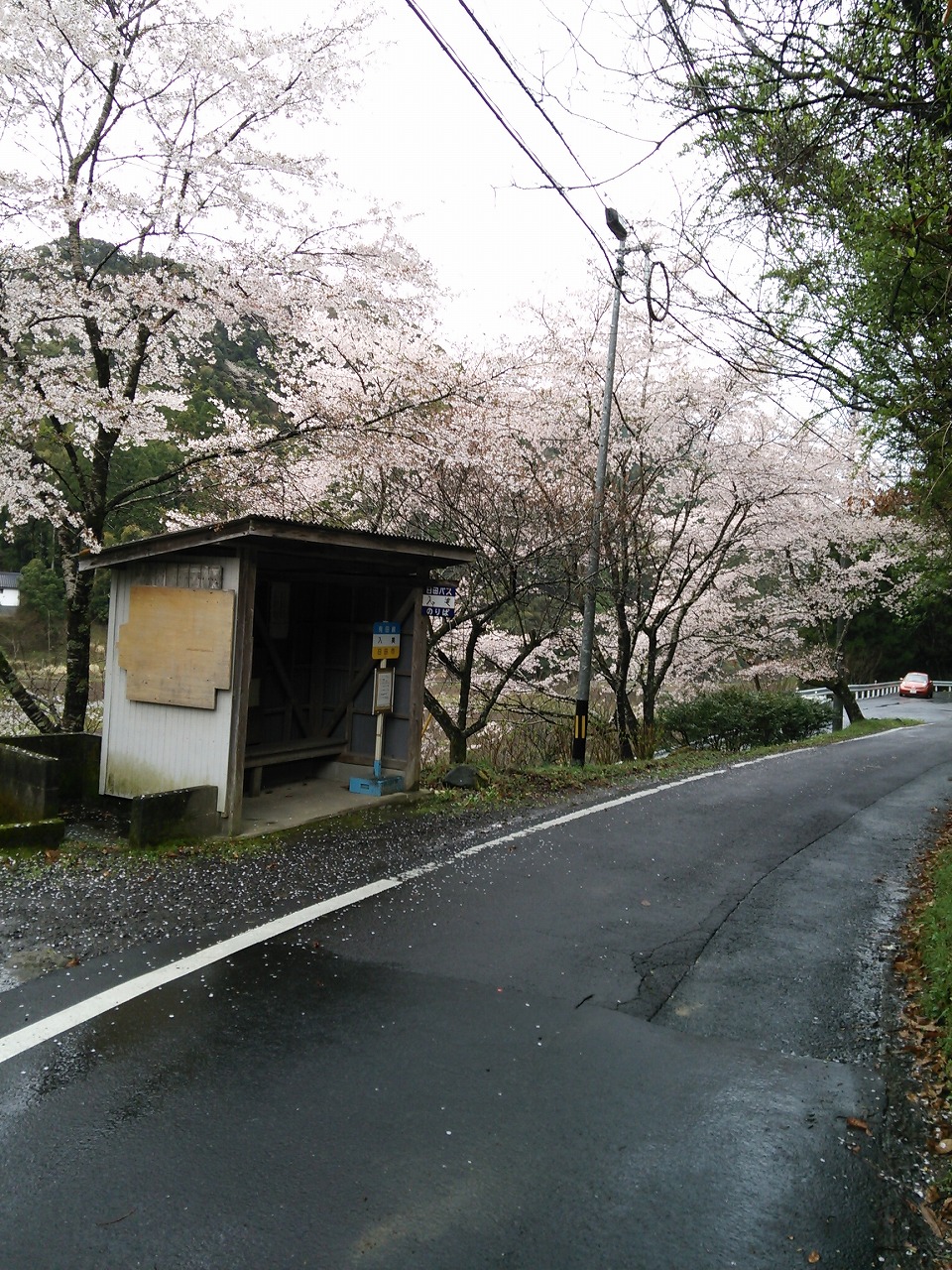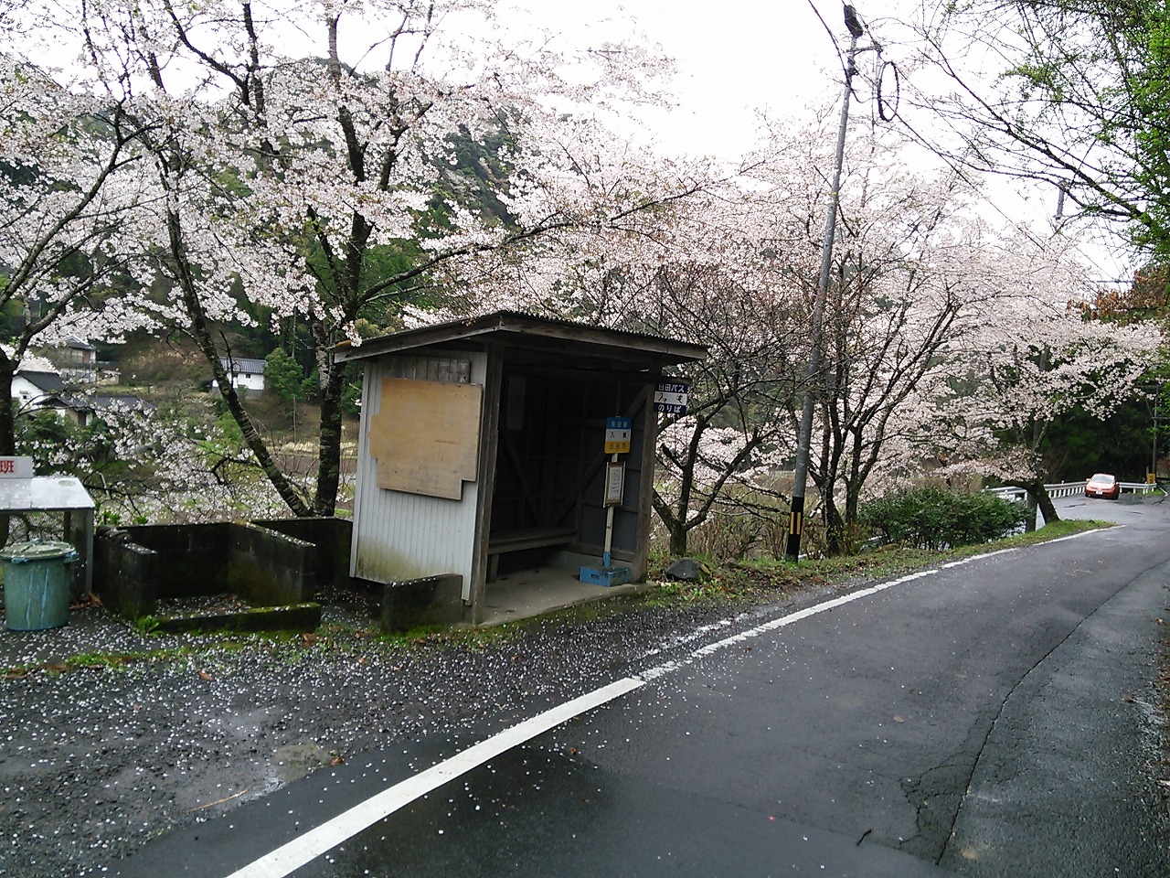 てなわけで、ある日カミさんと二人で近所に散歩に出かけた最中、裏路地に1軒のぜんざい屋さんを発見しました。住居を改造したもののようです。中には竹のオブジェがびっしり!異空間のようなその店内に圧倒されました。 で、そこのぜんざい屋さんの写真を撮り忘れてたので、撮ってから後編書こうとなってたら嫁さんが病気見つかって、と忙しくなったわけであります。なので後編書けなかったんですね。ええいままよ、写真は別の機会でいいや。 店主と話をしてるうちに、この竹は日田のものを使ってる・・・との説明がありまして。え、日田のどの辺でしょう、色々聞いているうちに、あの入美ある有田線の周辺の地主さんであると判明。 「親戚が銀杏の缶詰ば作りよってですね」 あ、それ有田線の途中バス停「缶詰工場前」のそれだな。銀杏のだったんだ・・・。 ともかく。 入美は道路の区画整理でなくなっていないかどうか情報を聞き出す機会が出来ました。曖昧な返事が返ってきました。 「あったような、なかったような・・・」 行ってみるしかなくなりました。 入美~横畑間の新道への路線付け替えのお知らせがあった以上、今年の桜が最後かもしれないと踏みました。 その日の天気は大荒れで、最初に向かった、毎年行くことにしている行楽地秋月では花腐しの豪雨が降りました。 秋月を出て1時間強で、日田の奥へとレンタカーを走らせ。 この周辺、小雨は降っていましたが桜はそこまで散っていませんでした。 まるでわれわれを待っていたかのごとく満開の入美桜が待ち受けてくれました。 晴れてたらなー、1日ずれてたらなー(前日は晴れてた)。多少はそう思いましたが。 もうここからは夢中になって何枚も写真撮りました。 このバス停、本当に美しい!! 惜別の気持ちを秘めて車を日田中心街まで走らせはじめたら、5分くらいでどっと豪雨が降りました。 まるで自分たちを待ってくれていたかのような、そんな気持ちになりました。 このバス停の去就はわかりません。ひょっとしたら桜を上手く残して、道路が整備されるかもしれません。が、この狭い道路のたたずまいは消えるでしょう。 なんだかんだで来年もあるかもしれないし、なくなるかもしれない。 とりあえず、今年こうやって桜の咲く入美が撮れたことに感謝し、また 「行こう!」 という気持ちを後押しした、あのぜんざい屋さんにも感謝せねば。 豪雨はその後数時間続きました。きっとあの直後に桜は散り果ててしまっていたでしょう。 「日田バスの女王」は待っていてくれてた、と自分は信じることにします。 PR