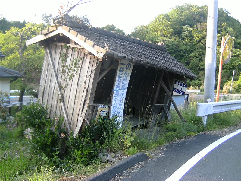 × [PR]上記の広告は3ヶ月以上新規記事投稿のないブログに表示されています。新しい記事を書く事で広告が消えます。 ととろの路線開通当時には、バス停の開設に「バス停の待合所を作るのが必須条件」だったようで、「土地を出し合ってここに待合室を作った」という記述が。 もちろん道路交通法などの法律に基づいた義務ではなかったと思いますが、そういった理由でか、待合所のあるバス停が大分県には実に多い。 バス停の前におられた地元のギャル(※敬意を表し)たちに伺いましたところこの待合室も、開通時昭和35~6年ごろに建てられたのこと。 すっかり傾いてます。壊れる前に写真に納められてよかった。 PR