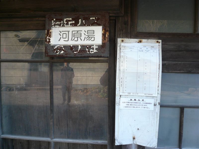 × [PR]上記の広告は3ヶ月以上新規記事投稿のないブログに表示されています。新しい記事を書く事で広告が消えます。 思えばそれが「軒下バス停」の原体験だった。 息抜きにといつも使っていた野球グラウンドまで、先生や旅館の方の引率でマイクロバスでよくみんなで移動。そのグラウンド側の乗降ポイントにしていたのが「湯坪」という軒下バス停。 一見して変だと気が付いた。当時住んでた福岡にあるバス停は、当然のごとく標柱を以ってバス停となす。それが、軒下にぶら下がった標識、時刻表は壁に張っただけって。嘘だろ? 帰りがけ、道中のバス停を凝視することにした。他にもそういうバス停があるかもしれない。 ・・・すると、待合室の壁タイプのバス停、壁に貼っただけ、なんてのが連日、新発見という形で日を置いて出現。それはもうめくるめく日々だったなあ、うん。 ・・・さて、そんな原体験から20年を経て去年、せりざわさん(※その日の写真は全て彼によるもの)と撮影に向かった。 残念ながら、当時の面影は減っていた。 この「河原湯」は当時は軒下型だった。 この辺、温泉から出る蒸気がいっぱいで、金属製品の侵蝕も早いのだろう。そのせいか、他の地域のバス停と比べ物にならないくらいぼろぼろになっていた。けれど、再会するまで生き残っていてくれた。遠くの幼馴染に再会したような、そんな気分に浸った。 PR