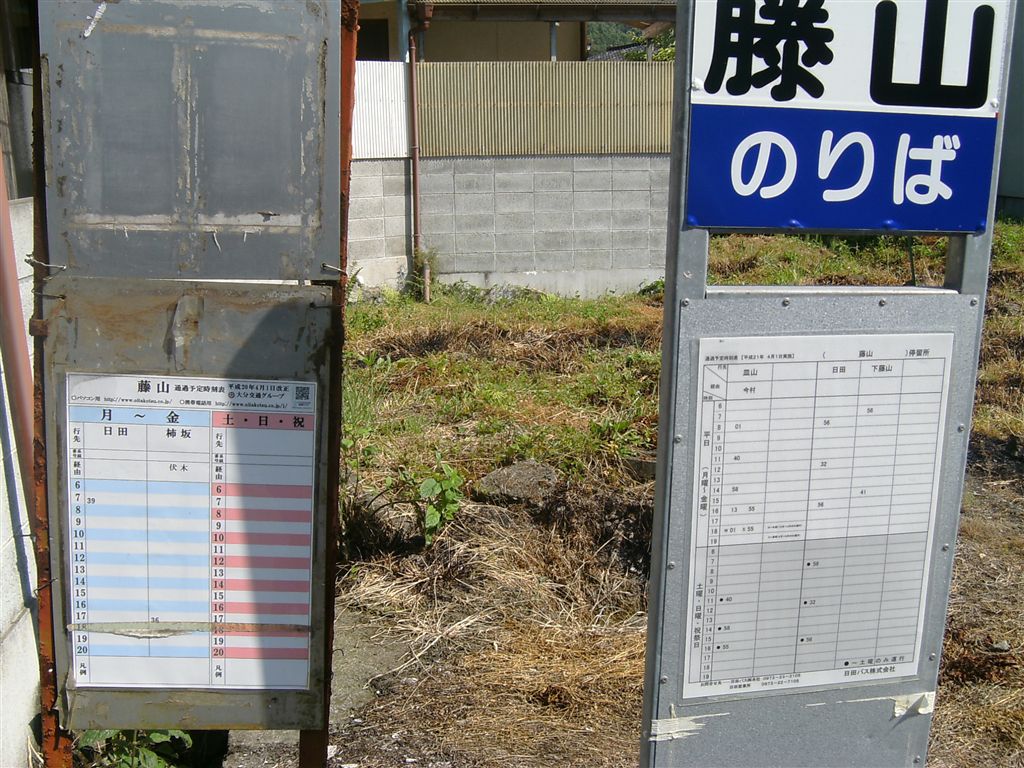 http://tokublo.net/jimao_syoyu/ からこんなステキな紹介記事を頂きました。ありがとうございます。 まだまだ、ブログにお蔵だししてないものは残ってるもんだなー。 これは古い型の壁バス停ですね。もう皆さんもすっかり慣れたかと思います。 でも、おかしいことに気付きません?時刻表がないんですよ。 ・・・というのも。 とまあ、こういうことです。 立ってます(※このブログ独自の表現)。 写真を撮ったのはかなり前です。現在は日田バスのみが走ってますが、ここを大分交通の伏木経由(旧国道線経由)が走っていた時代があった、ということですね。 日田バスは比較的本数が多いのですが、これは終点の小鹿田(皿山)が焼き物で有名で、また通学路線でもあり需要がないわけじゃないからなんですね。 伏木線は壮絶でした。廃止になっちゃったんだよなあ…。 PR
