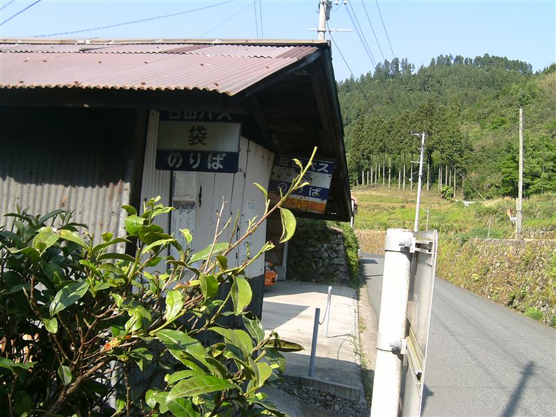 谷というか高原を縫うようにして走る、細い県道沿いの小さな集落のバス停。