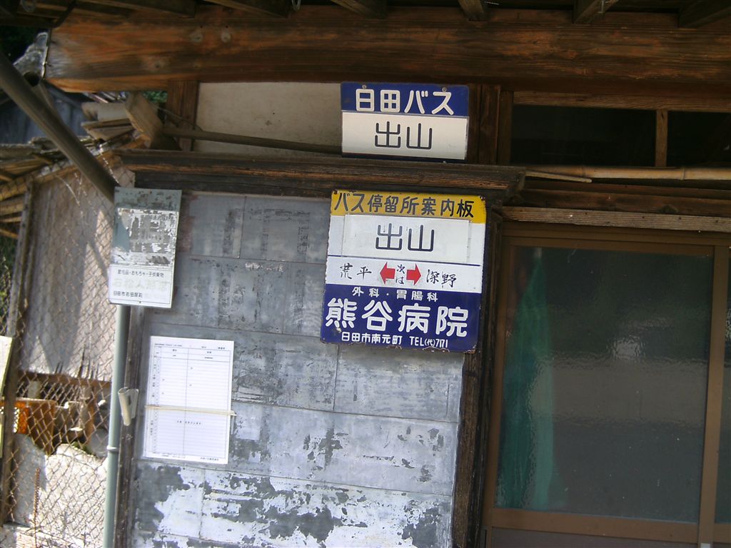 そうなんです。今年、ちゃんと行ってきました。 日田バスの公式サイトにお知らせがありました。 「入美~横畑間を新道に付け替えます」 アナウンスがあったんです。ああ、終わったなと思いました。 一応ストリートビューで確認してみました。 2013年。アナウンスは今年。 ああ、ついに新道が出来たんだな。覚悟して現地に行きました。 息を呑むほどの満開でしたとも!! このブログを再開させようと思ったかというと、実はあるきっかけがあったのでした。 その件は後半にて、ホムフフ、出し惜しみ!! 後編へ続く!! 次回! 「『缶詰工場前』の缶詰工場では何の缶詰を作っていたか」の謎も解明!乞うご期待!! 以前この「鼠谷」を紹介した後、割りとすぐに新しいバス停が立ったことがありました。 ひょっとしたら紹介したことで苦情があったのかもしれませんし、その思惑は私からは量りかねます。 なものでこちらの「出山」。 2009年に撮ったものです。 下一ツ戸の住民の方に伺ったときに 「あそこは空き家にしとるけん適当にしてもらっとるとよね」 なんて教わったバス停。 一つ手前のこのバス停「深野」が、再来訪時にきれいな柱になって立ってました。 おそらく横の水路の補修のさいに潰したのでしょうか。 で、出山に行ってみると・・・ 立ってる・・・あれ、でも 残ってる!! これ、多分「珍百景」効果だと思います。 「下一ツ戸」から二つとなりのバス停です。 |