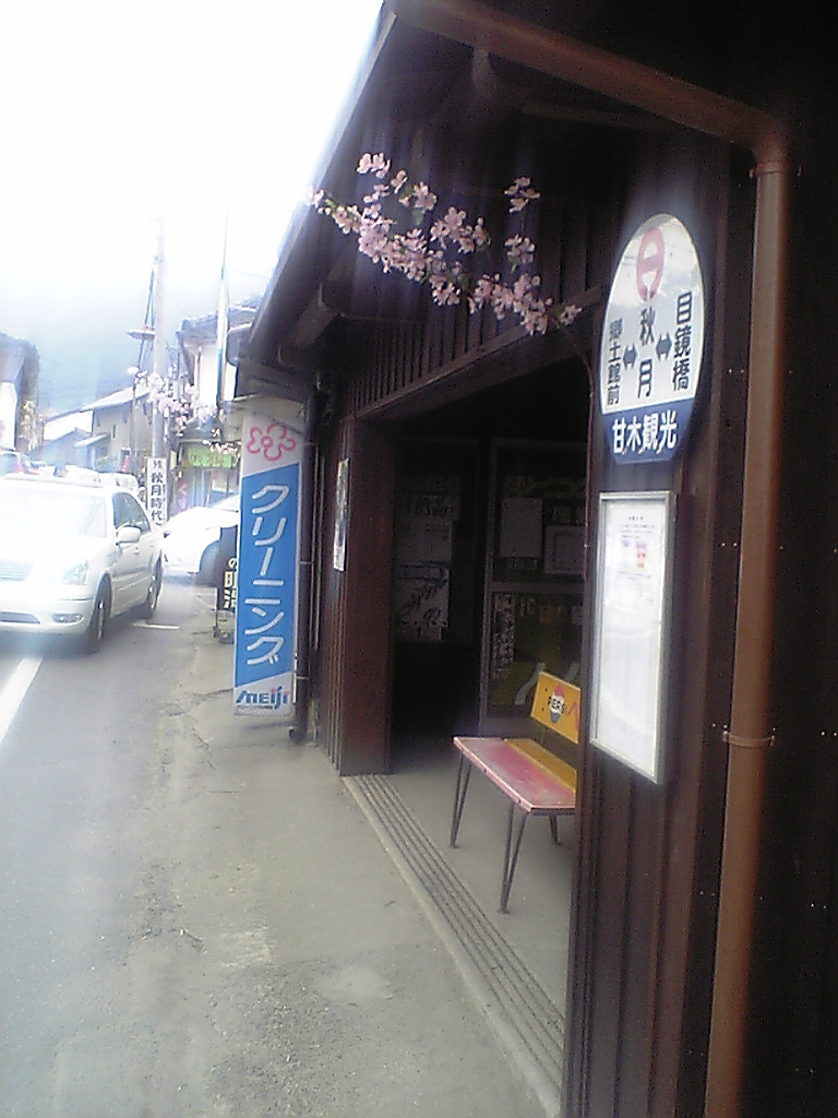 この場所には毎年訪れる習慣がぼくら夫婦にはあります。 この桜のトンネル目当てに毎年通い詰めているのです。 秋月の中心道路は古きよき昭和の路地と、江戸屋敷とが混在して道路整備が全く更新されておらず、その真ん中を定期バスが走るという事態になっています。 そうなんです、壁バス停なんですよ。 実は2年位前まで気付いてなかった。盲点だったのです。この路線はおそらくネットの一部では有名なかの朝倉軌道参加の会社が開通させた路線で、その後西鉄バスに編入。のちに甘木(朝倉)ローカル線は廃止になり、地元の甘木観光というタクシー会社が規制緩和で参入。 色々大人の事情やら経緯があるのでしょう、そこらの地方自治体の代替バス以上どころか、西鉄バス並みのサービスで運行してるにもかかわらず、Web上では時刻表サイトが市役所のページでしか確認できないなど不便な点はありますががんばっています。 甘木観光のこのバス停は他のバス停は「ちゃんとしてる」事から、おそらく「西鉄がこうしてたからこうなった」だと思うのですが真相は定かではないです。自分が秋月に行く習慣が出来たころから甘木観光だったので…。 隣のバス停名、どっちもそそるバス停名でしょ?是非桜の季節に行ってみてください。 一度雨の日に訪れた時はバスで行けましたが、晴れの日の土日祝の花見シーズンは運行を途中で打ち切るそうです。行楽客のマイカーで大渋滞になるんです。 PR