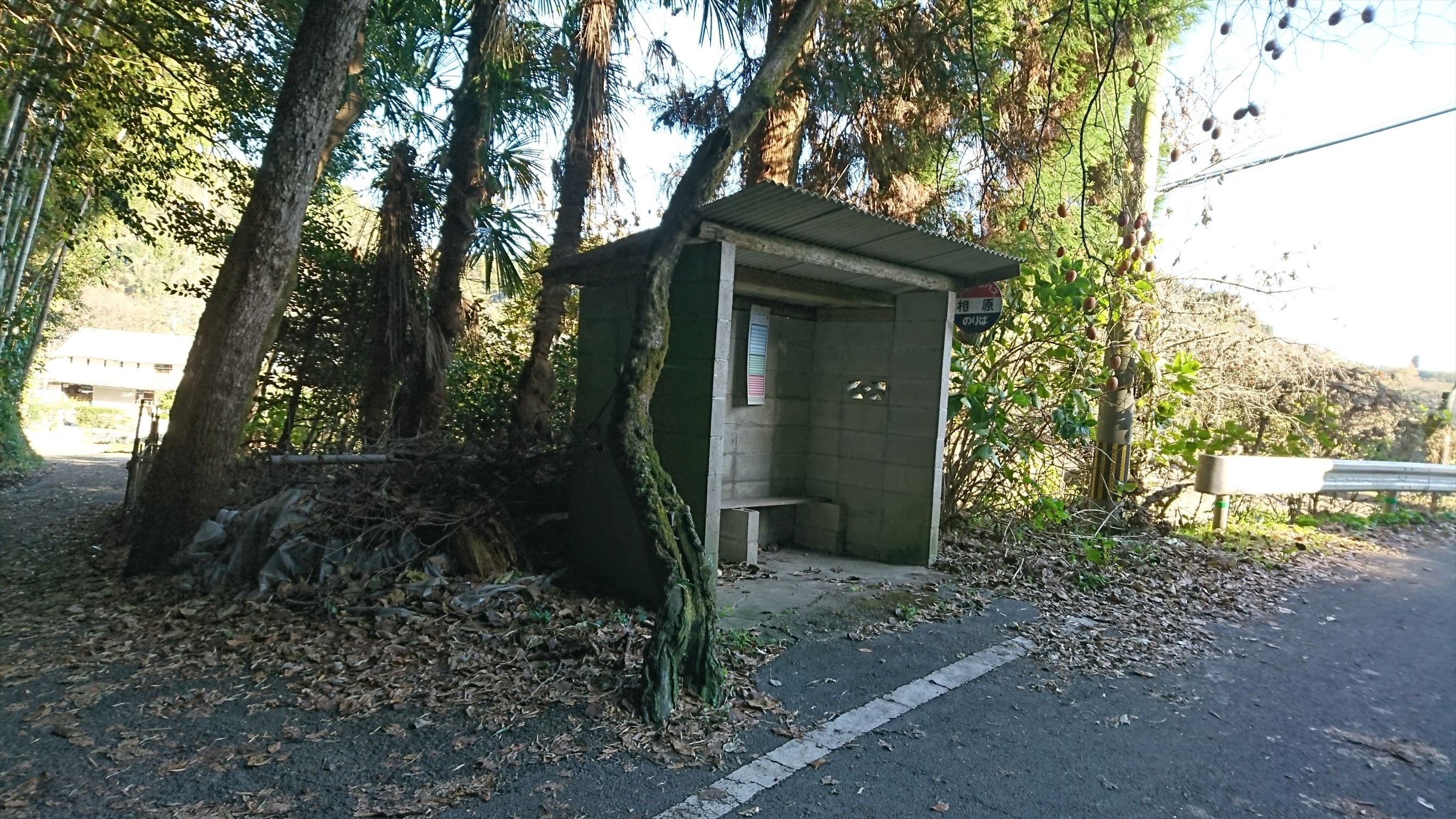 この長湯温泉を足がかりに2泊2日(初日夜出発)で行くつもりだったのです。 計画を立てた時点で 「こりゃ、竹田でやりすぎてつまづくな」 と考えました。また最初に向かった雉ヶ平線が全施設新設というテンション駄々下がりのスタートで 「竹田もうだめズラァ!!深追い禁止ズラ!!」 おれの心の中の国木田花丸(※詳しくはラブライブ!サンシャイン!!で調べてください)が言っている。 というわけで竹田や三重町などをかなり端折りました。 ここにどうしても向かいたかったんですね。 いやいや、手垢が付いたネタでしょうよ、ととろなんて、と思う向きがあるかもしれません。 うちは貧乏なので格安レンタカーのお世話になってます。 そこが、カミさんの闘病中本当にお世話になってねえ。 抗がん剤投与の2~3日の入院が2~4週間に一度発生するわけ。入退院のとき、タクシー代よりはるかに安いんだもの。 カミさんが亡くなって、法要も終わって落ち着いて。そうだ旅に出よう。 レンタカー会社の人が、この旅の始まりのときに聞いてきた。 「いやー、しばらく来なかったでしょ。奥さんのこと心配してたんですよ。また病院ですか」 「あ、…亡くなりました」 「えっ!!」 色々会話はあったのだけど、うっかり行く先を 「大分の山奥へ」(※間違ってないよな) と言ってしまったばかりに店員さんが真剣な表情で 「…必ず、帰ってきてください!!」 なんか勘違いされてるーーーー!! なんで、バス停の趣味の話でとっつきやすいととろのバス停の話をして、このバス停の写真だけは絶対に撮って帰ってこようと誓ったのでした。 帰って見せて、むしろその店員さんにウケたのはこのバス停だった・・・。 |